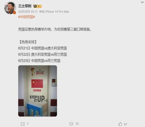 今年7月3日以及7月6日的世預(yù)賽第三窗口期,中國(guó)男籃再次迎戰(zhàn)日本男籃和中國(guó)臺(tái)北隊(duì),在此之前還有幾場(chǎng)熱身賽要打,對(duì)手為澳大利亞男籃與荷蘭男籃。