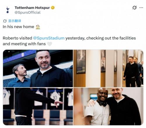 德澤爾比出任熱刺主帥,他在昨天參觀了熱刺球場,并與球迷們見面,俱樂部官方社媒曬出照片。