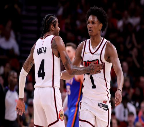 “杰倫·格林防成一個,他就嘴碎。我防下他一個,我也嘴碎。這是充滿競爭的愛,他是我兄弟。”阿門說道。