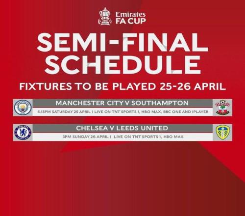 北京時(shí)間4月9日,英足總官方發(fā)布公告,公布了足總杯半決賽的開球時(shí)間。