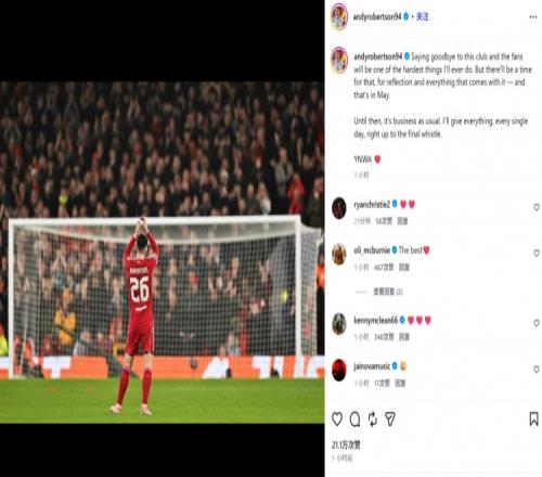 羅伯遜曬出自己向安菲爾德的謝場(chǎng)照,并表示:“告別這家俱樂部和球迷們將是我人生中最艱難的決定之一。但此后將會(huì)有那么一個(gè)時(shí)刻,讓我好好回顧并感受一切——那就是五月份。”