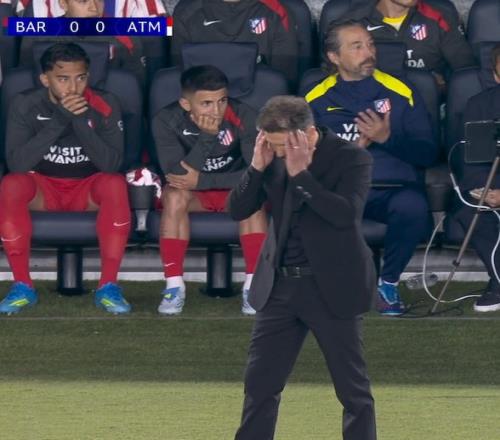 比賽中,小西蒙尼在一次進攻中傳中直接傳出底線,鏡頭馬上給到他的父親——站在場邊的西蒙尼,西蒙尼看到這一幕后有些尷尬的搓了搓頭。