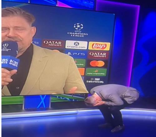 在利物浦輸給巴黎之后,杰米-卡拉格與傳奇門將彼得-舒梅切爾在演播室發(fā)生激烈爭執(zhí),一旁的蒂埃里-亨利試圖躲起來“逃避紛爭”。