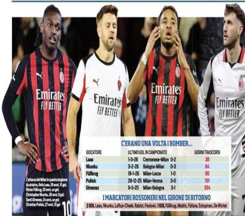 雖然目前AC米蘭在意甲積分榜上排名第三,但本賽季全隊(duì)聯(lián)賽總進(jìn)球數(shù)僅為47球,是爭(zhēng)冠集團(tuán)中最少的,要知道領(lǐng)頭羊國(guó)際米蘭同期轟入 71球,進(jìn)球數(shù)比米蘭多了整整24個(gè)。紅黑軍團(tuán)前鋒的進(jìn)球貢獻(xiàn)占比之低,更令人咋舌。當(dāng)對(duì)手的前鋒們頻頻登上射手榜時(shí),米蘭的進(jìn)球重任卻在相當(dāng)程度上由中后場(chǎng)球員承擔(dān)。帕夫洛維奇、拉比奧、福法納,這些名字接連出現(xiàn)在進(jìn)球者名單上,已經(jīng)成了某種諷刺性的“常規(guī)武器”