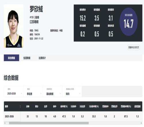 今年25歲的羅欣棫已經(jīng)在WCBA打了7個賽季,場均26.6分鐘,拿到14.5分5.2籃板2.6助攻1.1搶斷0.4蓋帽,命中率46.4%,三分命中率31.8%。羅欣棫已經(jīng)算是聯(lián)賽的頂級3D鋒線了。