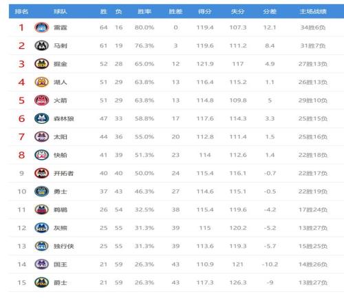 今日比賽后西部排名沒有變化,只是3-5名之間的差距縮小了。
