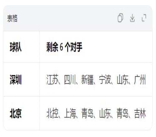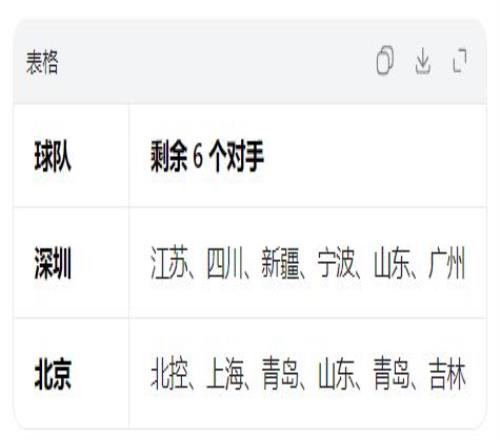 剩余的兩個四強(qiáng)席位,大概率會在深圳(第3,25勝)、北京(第4,24勝)、廣東(第5,24勝)、山東(第6,23勝)四隊(duì)中誕生。這就要看他們余下賽程的難度了,誰的簡單,誰最終躋身四強(qiáng)的概率就更大。