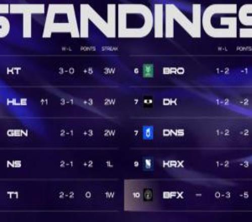 LCK今日賽果:T1橫掃DNS排名上升BFX戰(zhàn)績慘淡位列倒數(shù)第一