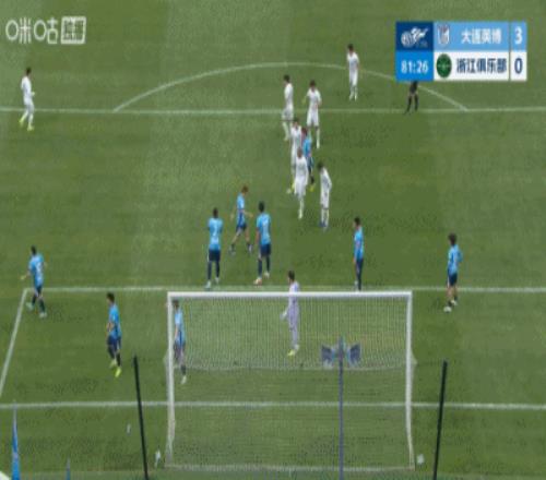 第66分鐘,大連英博取得三球領(lǐng)先,羅競助攻,毛偉杰帶球至禁區(qū),他面對(duì)劉浩帆防守冷靜扣球擺脫,隨后右腳低射遠(yuǎn)角破門,大連英博3-0領(lǐng)先浙江隊(duì)?!?/p>