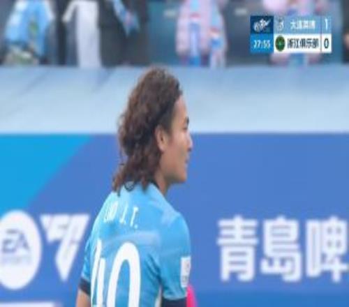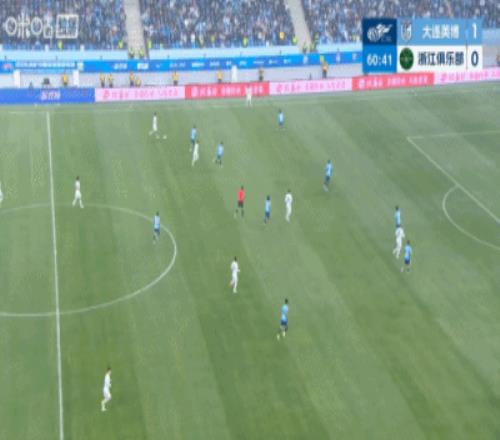 半場戰(zhàn)罷,大連英博暫1-0浙江。