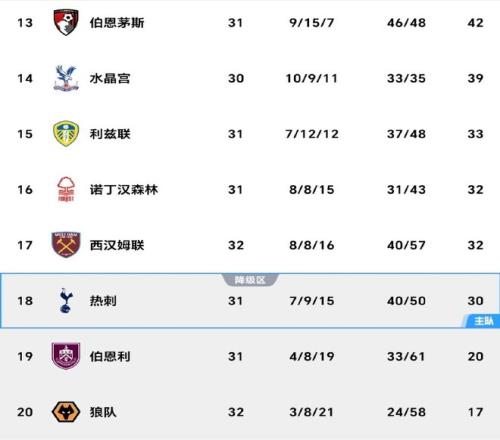 后穆里尼奧時代熱刺沉淪,13輪不勝跌入降級區(qū),阿森納奪冠成反差