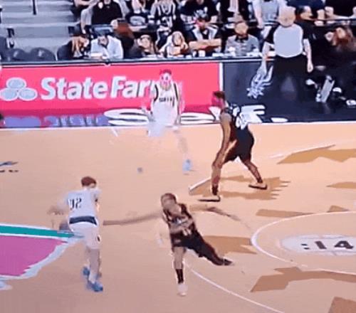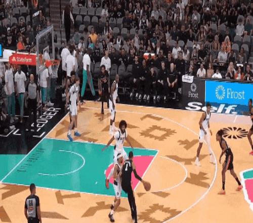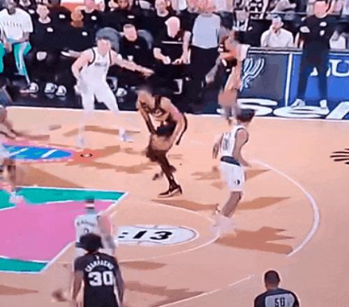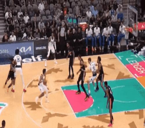 文班今天只2封蓋,但開場就有一個嚇得對面罰球線遲疑投籃的場面。