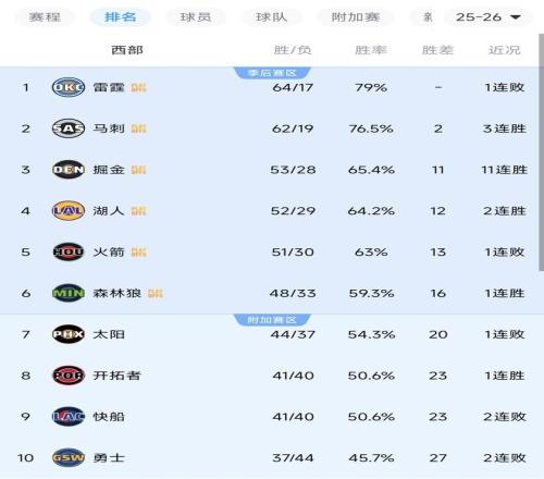 隨著掘金11連勝,湖人28分大勝!西部最新排名出爐,火箭鎖定第5