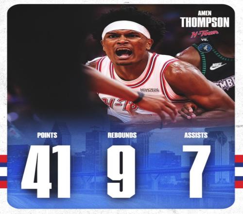在阿門-湯普森打出生涯之夜時(shí)火箭還是輸球了,阿門42分鐘,22中17,命中率高達(dá)77.3%,全場比賽暴扣8次,拿到41分9籃板7助攻2搶斷,得分創(chuàng)造生涯新高,也是生涯首次40+,可在一場對攻大戰(zhàn)還是無法擊敗殘陣森林狼。