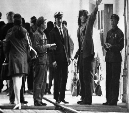 1972年4月13日,中國乒乓球代表團飛抵底特律,對美國進行回訪。新華社 圖