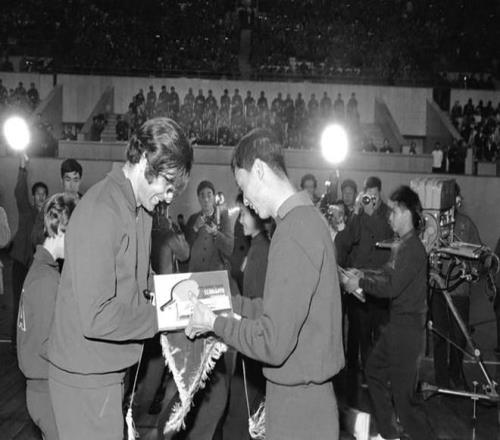 故事的發(fā)生在4月4日。當天下午訓練結束后,19歲的美國男選手格倫·科恩走出體育館,誤打誤撞地坐上了中國乒乓球隊的訓練大巴。黃頭發(fā)、藍眼睛的科恩,在當時的中國人看來十分扎眼。而他這一轉身,運動服背后的國家字母露了出來:U.S.A.。此時的科恩面朝車門,顯得很尷尬。中國隊的所有隊員也面面相覷,也沒人敢搭腔。