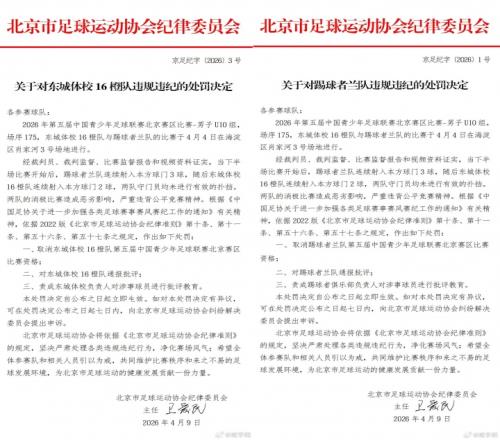 然后就搞出這么一個大事出來?,F(xiàn)在中國足協(xié)都已經(jīng)介入調(diào)查了。中國足協(xié)公告稱,4月4日北京賽區(qū)一場U10比賽中,東城體校16橙隊與踢球者蘭隊多次將球射入自家球門,門將未作有效撲救,屬嚴重虛假比賽行為,性質(zhì)惡劣、影響極壞。