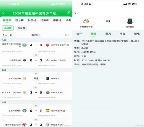 在足球中國的 APP 上,可以查到中青賽北京賽區(qū)的賽程比分對陣等信息,但是現(xiàn)在關(guān)于這場比賽的比分信息都已經(jīng)沒有了,只能看到比賽是4月4日上周六早上踢的(下圖)。