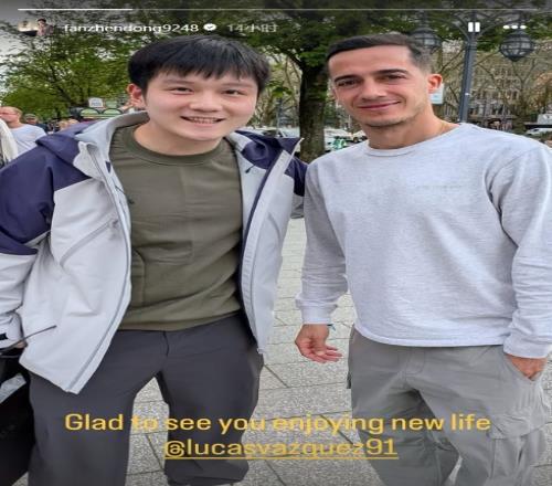 樊振東在2024年造訪皇馬基地,兩人就曾有過一面之緣。巴斯克斯去年夏天自由身離開皇馬,加盟德甲勒沃庫森。樊振東去年在薩爾布呂肯效力一年,今年轉(zhuǎn)會(huì)至杜塞爾多夫,將繼續(xù)征戰(zhàn)乒乓球德甲。