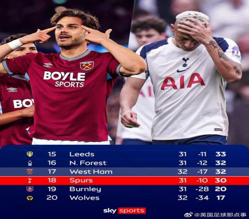 熱刺近18年來首次跌入降級區(qū)英超21輪后西漢姆拿了18分熱刺僅3分 微博 2026-04-11 16:30:41 【跌入降級區(qū)】在西漢姆4比0狼隊(duì)后,熱刺近18年來首次跌入降級區(qū)。值得注意的是,自21輪英超后,西漢姆聯(lián)已拿到18分,而熱刺隊(duì)僅僅獲得3分。 足球熱刺西漢姆聯(lián)英超轉(zhuǎn)載 上一篇: TA:2026世界杯門票新增前排一類票,比普通一類票貴1500美元下一篇: 阿爾特塔:去年如果門將不是多納魯馬,我們大概率能挺進(jìn)歐冠決賽