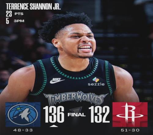 先看火箭和森林狼在這場對決,四節(jié)比分(森林狼在前):37-36、32-37、34-33、33-26,火箭又是末節(jié)崩盤!火箭后衛(wèi)阿門-湯普森出戰(zhàn)41分40秒,投籃22中17,三分1中0,罰球7中7,空砍41分9籃板7助攻1搶斷1蓋帽。
