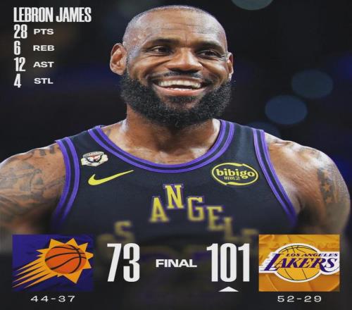 掘金和雷霆的比賽,沒有太多好寫的,雙方都是替補(bǔ)陣容。約基奇還差1場才能評獎(jiǎng),收官戰(zhàn)必須出戰(zhàn)15分鐘以上。文班已經(jīng)達(dá)到65場,收官戰(zhàn)很可能輪休。最后說說湖人和太陽這一場,詹姆斯16投10中砍下28分6籃板12助攻4搶斷。