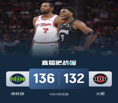 比賽上來,森林狼先拿4分搶下開局,不過火箭很快就追上與對手展開拉鋸,杜蘭特手感火熱單節(jié)得分已經上雙,次節(jié)雙方繼續(xù)大打對攻戰(zhàn),分差始終未能拉開,阿門半場狂轟24分幫助火箭在半場結束時領先4分;下半場回來,兩隊依舊是打得難解難分,不過在末節(jié)火箭的命中率突然下降,森林狼一波流建立起兩位數的領先優(yōu)勢,火箭沒能再獲得機會,最終森林狼力克火箭,終結了后者的八連勝。