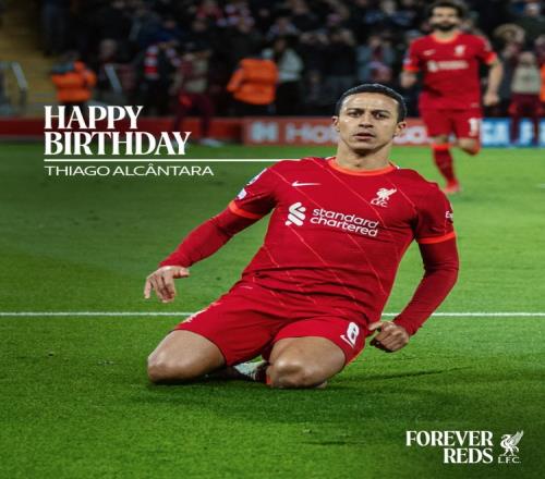 體育播報(bào)4月11日宣 今天是蒂亞戈的35歲生日,老東家利物浦為他慶生。
