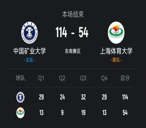 末節(jié)比賽,寧吉桐連續(xù)沖擊籃筐造成殺傷,通過罰球?qū)⒎植罾_到50分,張翔補籃艱難回應(yīng),周思凡和潘羿臣相繼飆中三分,幫助球隊繼續(xù)擴大優(yōu)勢,上海體大無心戀戰(zhàn),自主,中國礦大以114-54狂勝上海體大60分。