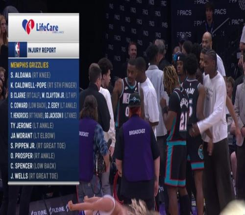 本場(chǎng)比賽,灰熊14名球員登上傷病名單,缺陣球員累計(jì)薪資高達(dá)1.56億!出戰(zhàn)6人薪資分別為: