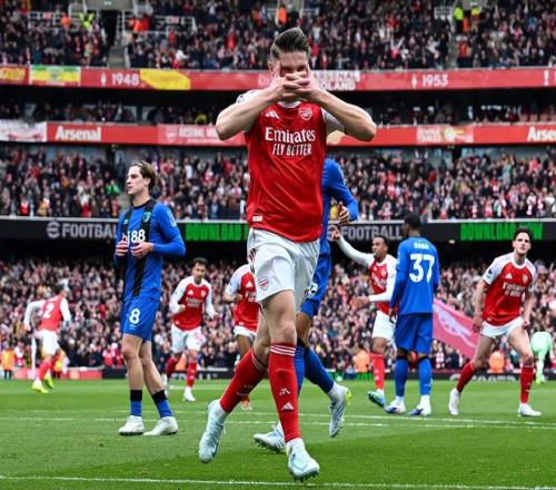 第19分鐘,賴斯開出角球,哈弗茨門前甩頭攻門擦著橫梁出界;第35分鐘,加布里埃爾禁區(qū)內(nèi)轉(zhuǎn)身打門打在了克里斯蒂揚起了手臂上,主裁判沒有猶豫吹罰點球,哲凱賴什大力出奇跡直接爆射入網(wǎng)扳平比分,1:1!哲凱賴什本賽季各項賽事已經(jīng)打入18球,槍手隊史處子賽季英超時代僅次于亨利和桑切斯。