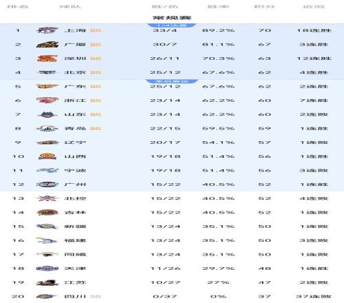 CBA悲喜兩重天:深圳12連勝穩(wěn)居前四,四川遭37連敗,附最新排名