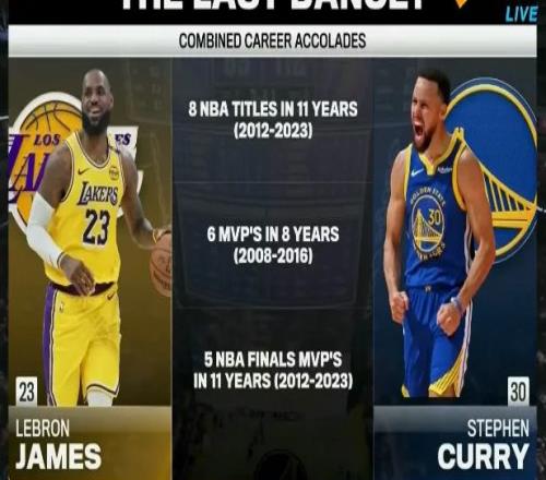 4月11日,在此前湖人對陣勇士的比賽中,媒體打出一列數(shù)據(jù),詹姆斯和庫里在11年里拿下8個總冠軍,8年里6個MVP,11年里獲得5個總冠軍FMVP。