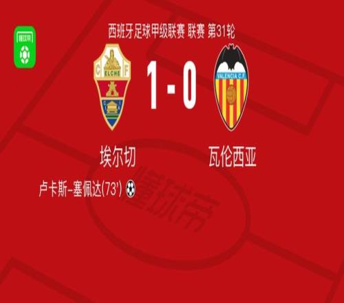 北京時(shí)間4月11日西班牙足球甲級(jí)聯(lián)賽 聯(lián)賽 第31輪,埃爾切主場(chǎng)對(duì)陣瓦倫西亞。埃爾切盧卡斯-塞佩達(dá)破門(mén)。最終比分埃爾切 1-0 瓦倫西亞。