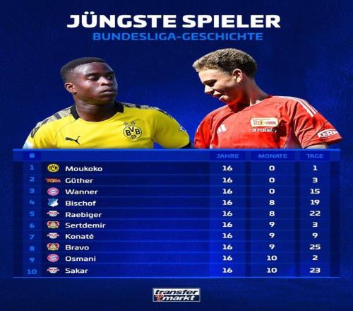 德甲歷史最年輕出場(chǎng)球員前10:穆科科第1,比朔夫、科納特上榜