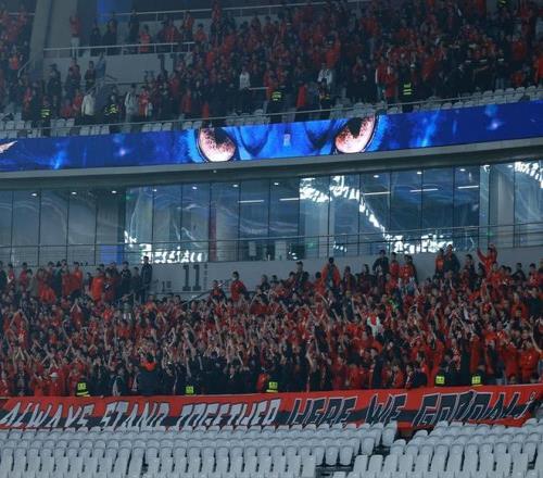 這場上海德比,能容納72000人的上海體育場基本坐滿。