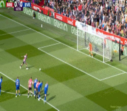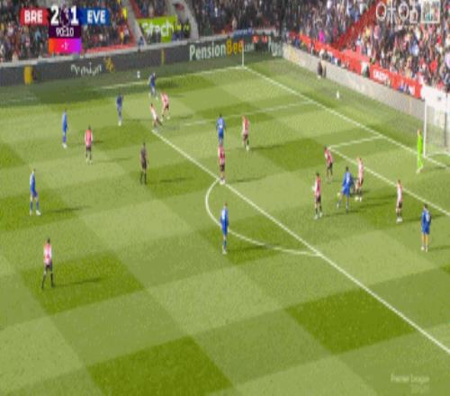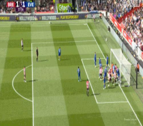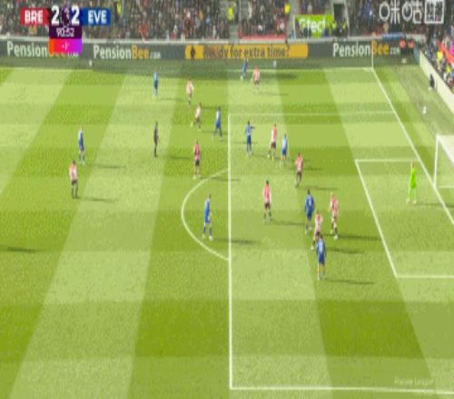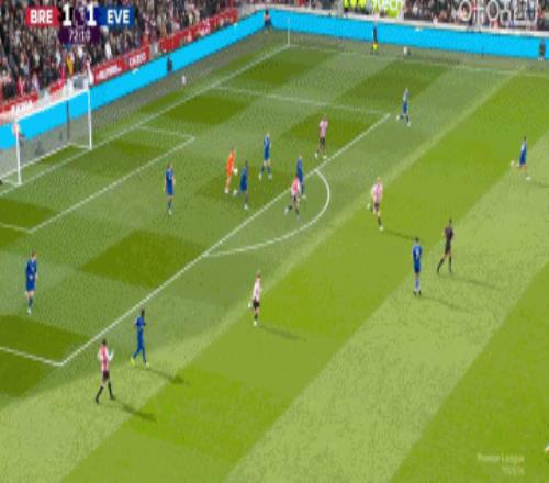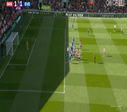 第38分鐘,布倫特福德左側(cè)角球開出,前點(diǎn)的頭球攻門被皮克福德再次神撲化解,后點(diǎn)補(bǔ)射再來一腳!皮克福德精彩兩連撲↓
