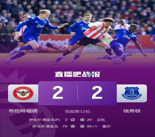 布倫特福德22埃弗頓霍爾失單刀+91分鐘絕平伊戈?duì)柕賮喐觌p響