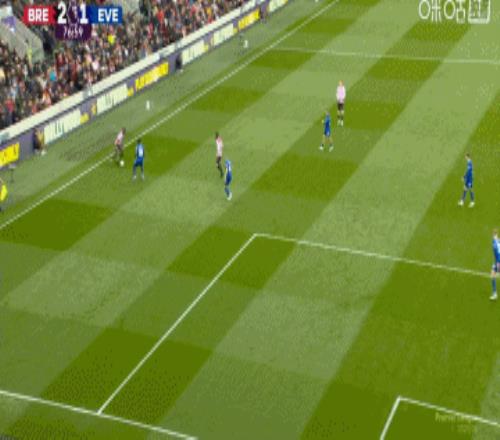 第76分鐘,卡約德右路啟動(dòng)內(nèi)切,禁區(qū)前右腳彈射,皮球打在伊戈?duì)枴さ賮喐晟砩献兙€彈進(jìn)球門!伊戈?duì)枴さ賮喐晖瓿呻p響,布倫特福德2-1再次領(lǐng)先埃弗頓↓