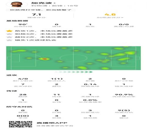 加克波本場4射0正1助攻+1關(guān)鍵傳球3搶斷3犯規(guī)+9對抗5成功