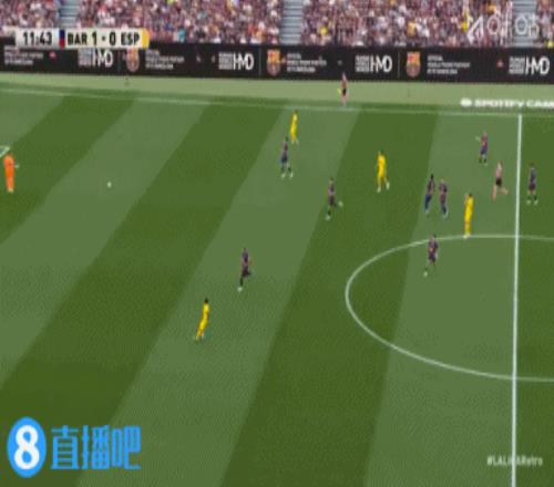 上半場補(bǔ)時(shí)3分鐘,巴薩2-0西班牙人。