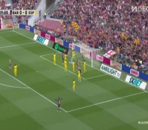 下半場補(bǔ)時(shí)5分鐘,巴薩4-1西班牙人。