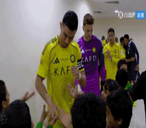上半場結(jié)束,C羅小跑回到更衣室。↓