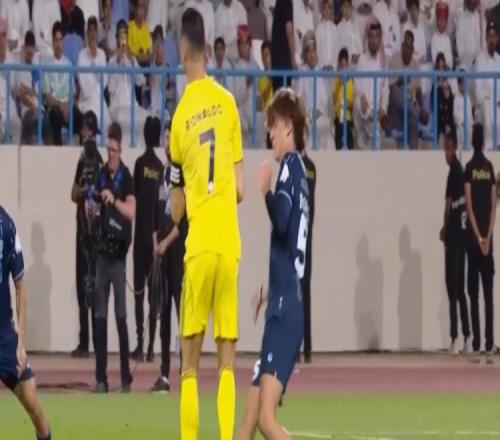 第7分鐘,C羅分球時被犯規(guī)倒地?!?/p>
