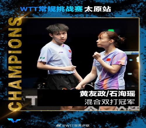 黃友政石洵瑤31黃鎮(zhèn)廷杜凱琹,奪得WTT太原挑戰(zhàn)賽混雙冠軍