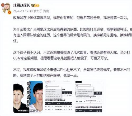 改年齡改名字國(guó)青小將惹爭(zhēng)議,籃協(xié)表態(tài),媒體人:第一次見