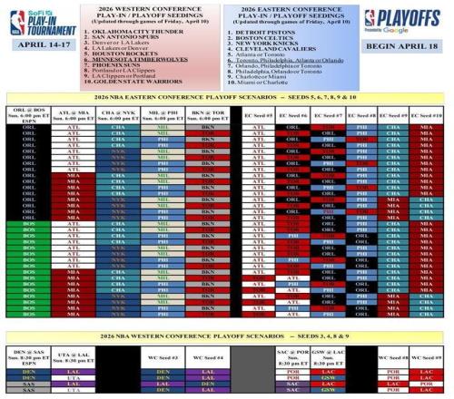 北京時(shí)間4月12日,NBA官方公布了常規(guī)賽全部最終排名可能性一覽。