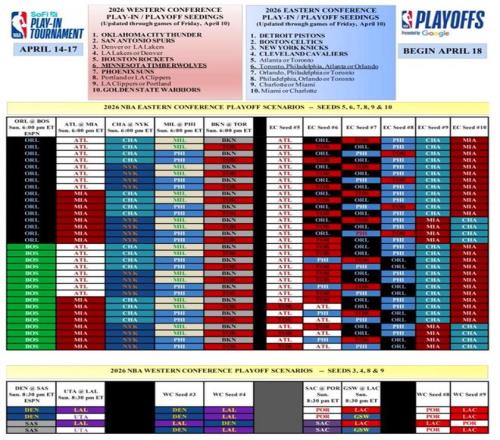 在常規(guī)賽收官戰(zhàn)即將開打之際,NBA官方也曬出最終東西部前十排名可能性分析,所有具體排名情況如下: