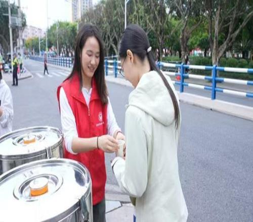 銅梁中超聯(lián)賽現(xiàn)場志愿者為球迷提供茶水。銅梁區(qū)委宣傳部供圖