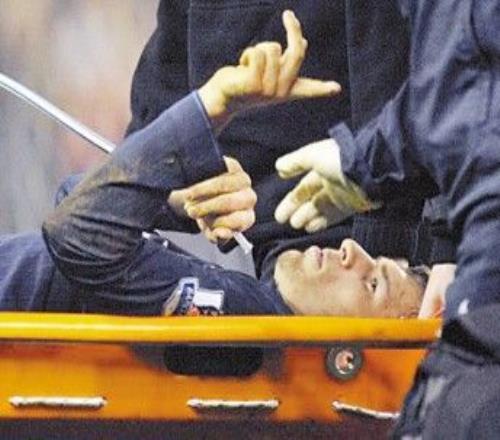 裁判吹停了比賽。本特納大喊隊(duì)醫(yī)。法布雷加斯嚇得歇斯底里。